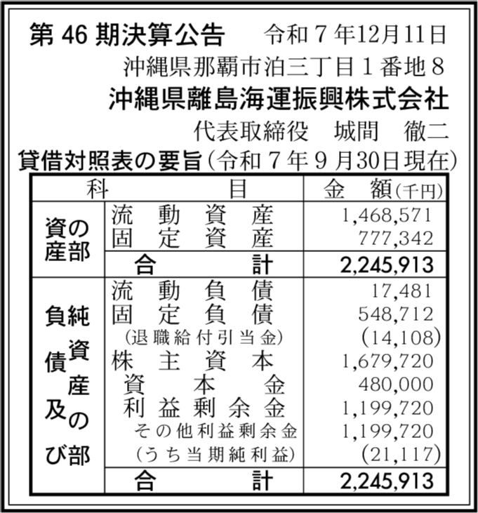 | 会社名 | 沖縄県離島海運振興株式会社 |