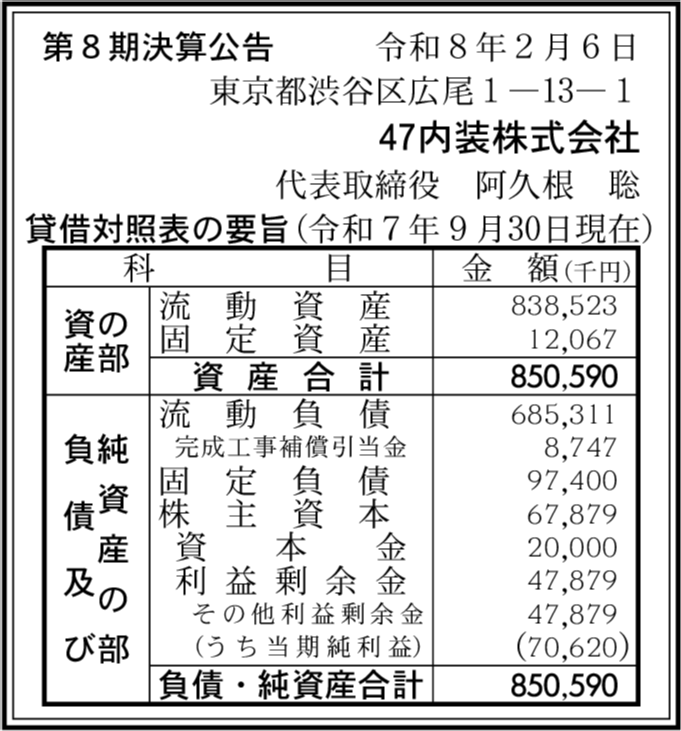 47株式会社 東京都渋谷区 【2025年9月期】 |