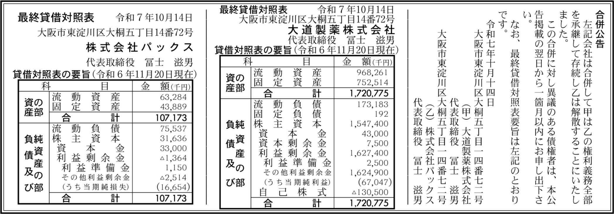 株式会社パックス 大阪市東淀川区 【2024年11月期】 |