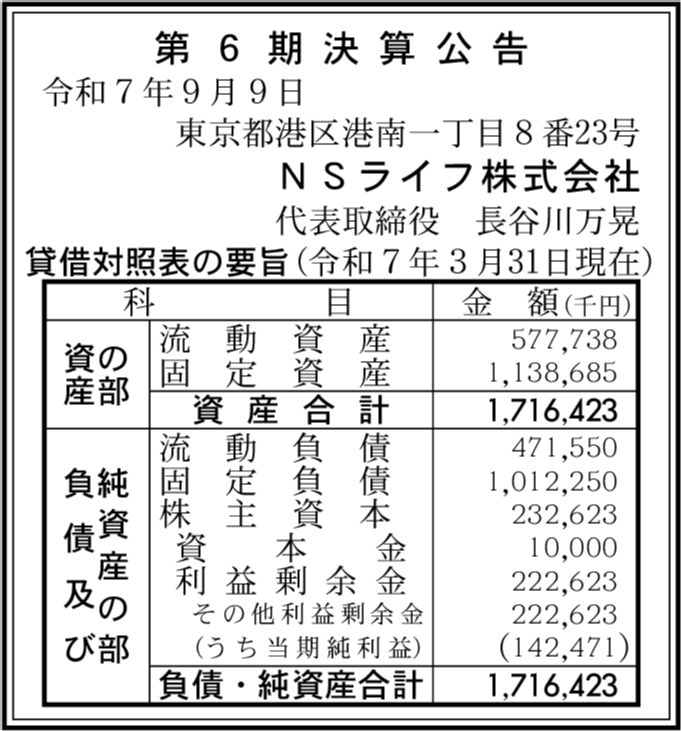 NSイノベーションズ株式会社 東京都港区 【2025年3月期】 |