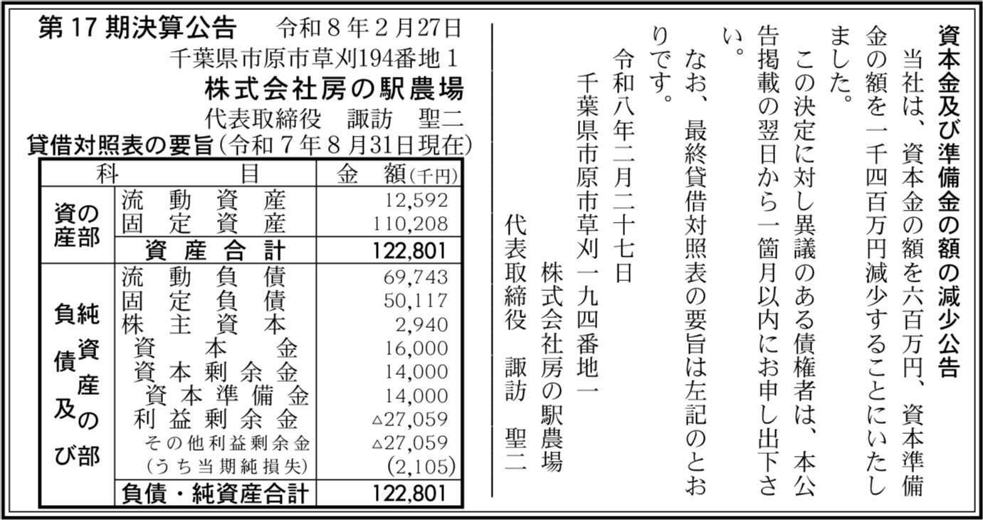 | 会社名 | 株式会社房の駅農場 |
