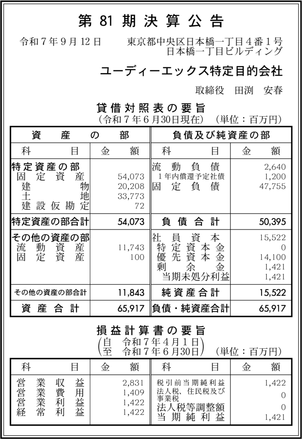 青梅開発特定目的会社 東京都中央区 【2025年6月期】 |