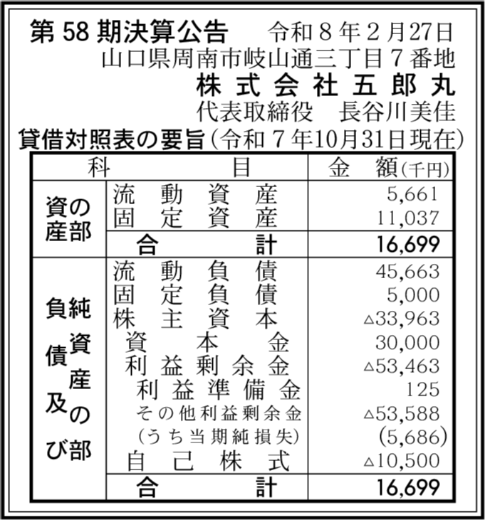 | 会社名 | 株式会社五郎丸 |
