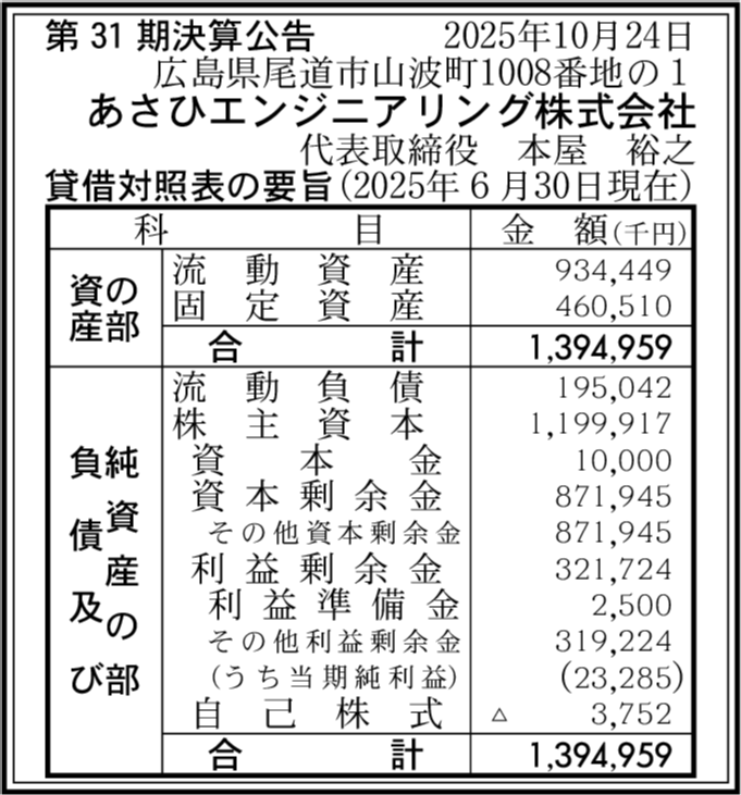 | 総資産 | 13億9,495万9,000円 (+7.32%) |