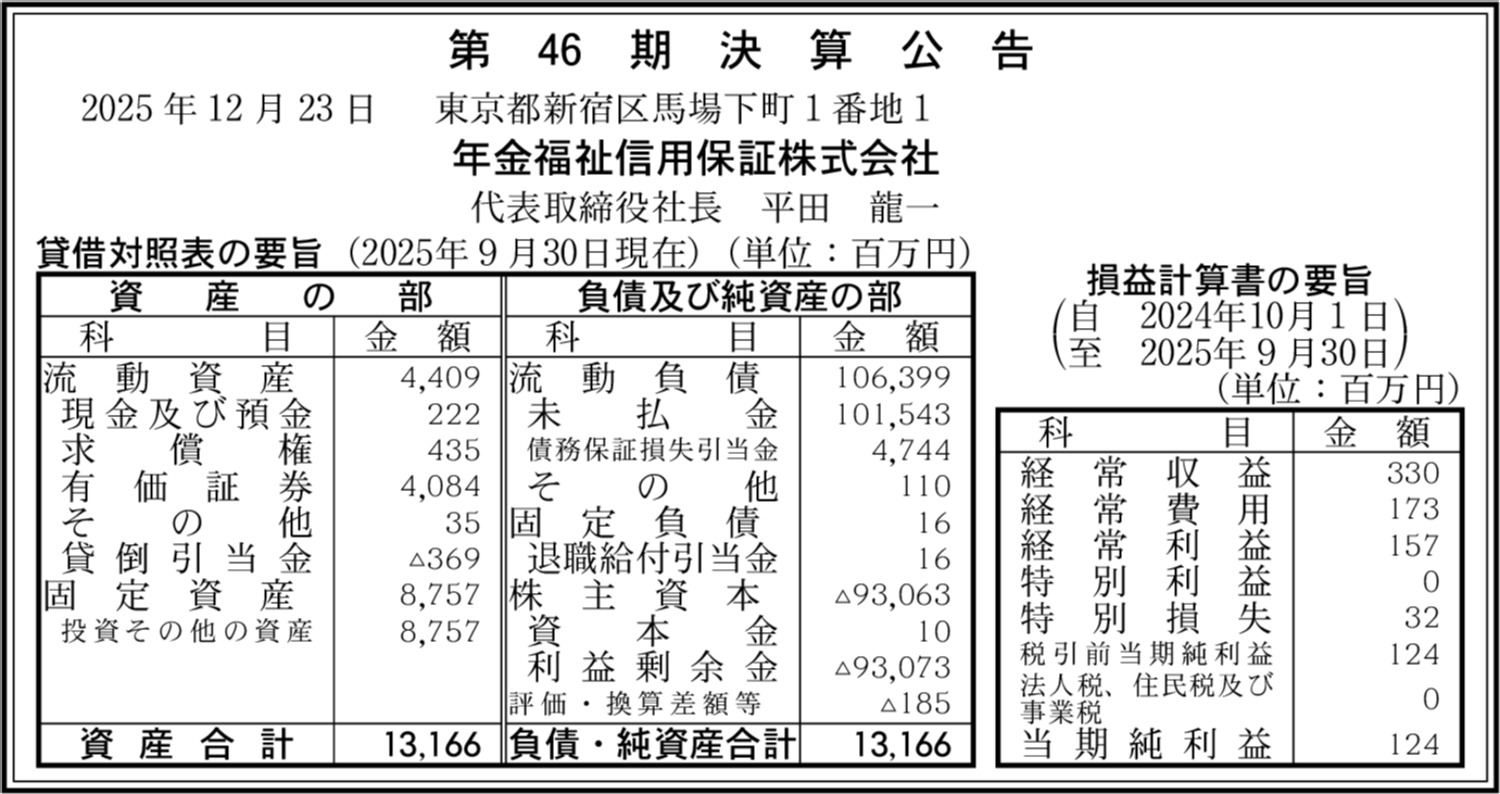 | 総資産 | 131億6,600万円 (▲0.27%) |