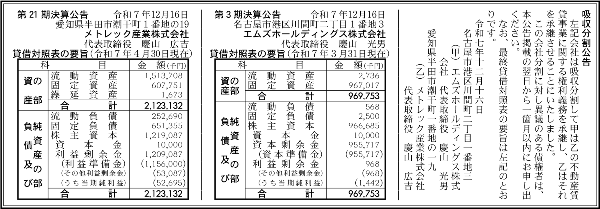 豊田メタル株式会社 愛知県半田市 【2025年3月期】 |