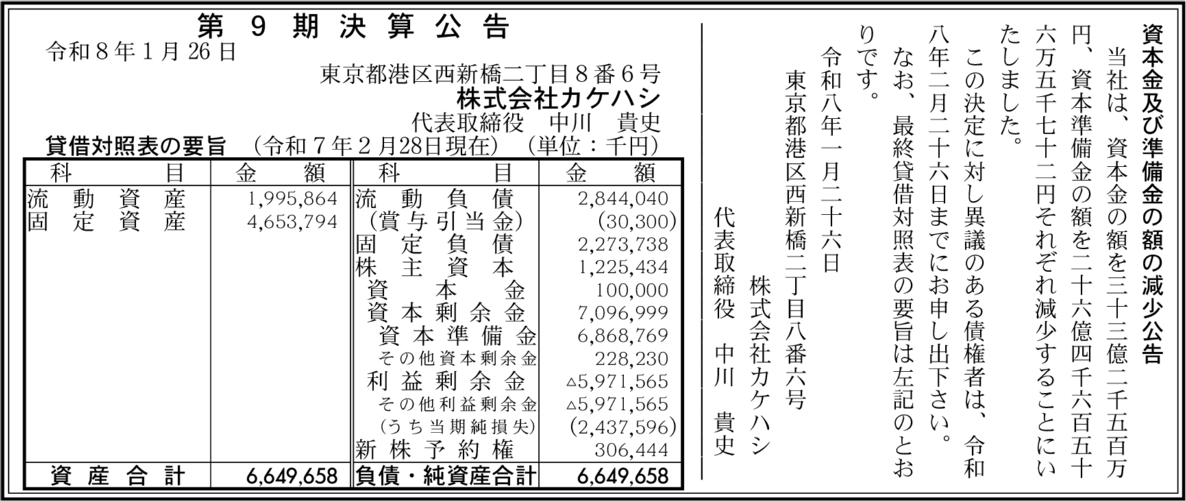 | 総資産 | 66億4,965万8,000円 |