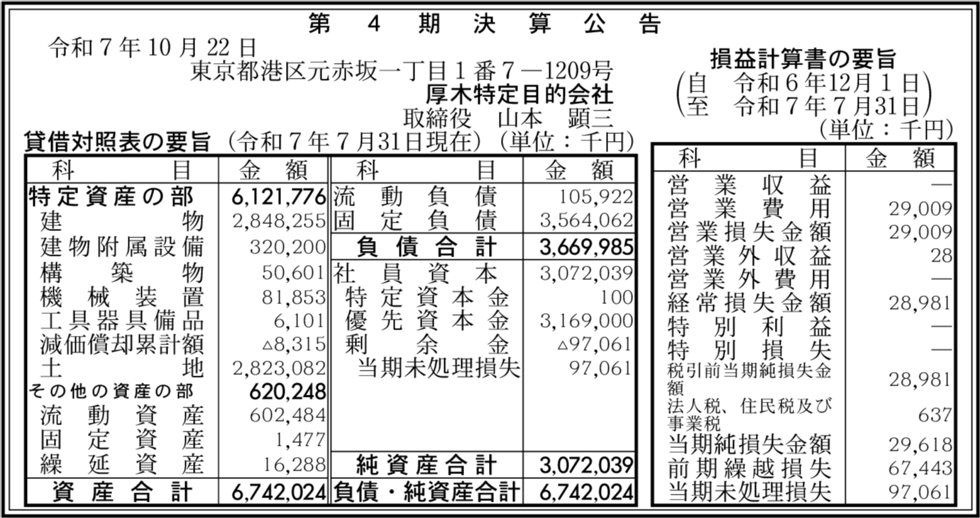 滋賀竜王特定目的会社 東京都港区 【2025年6月期】 |
