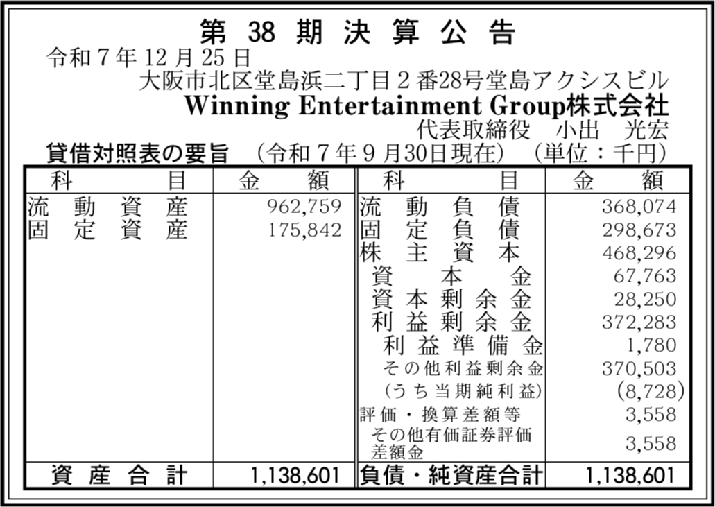 | 総資産 | 11億3,860万1,000円 (+1.44%) |