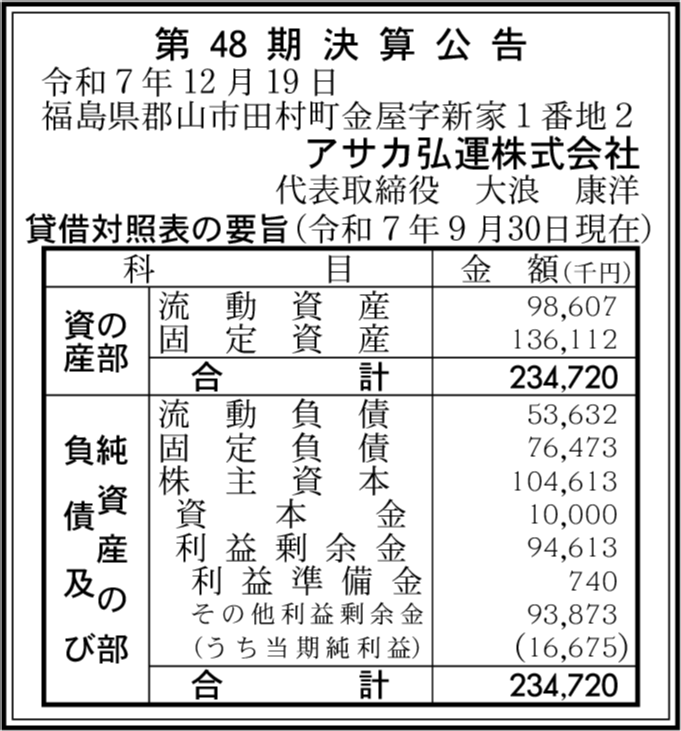 アルファクラブ株式会社 福島県郡山市 【2025年6月期】 |