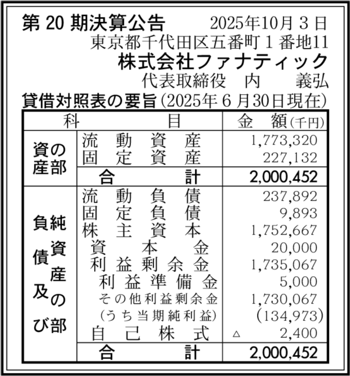 株式会社エンファクトリー 東京都千代田区 【2025年6月期】 |