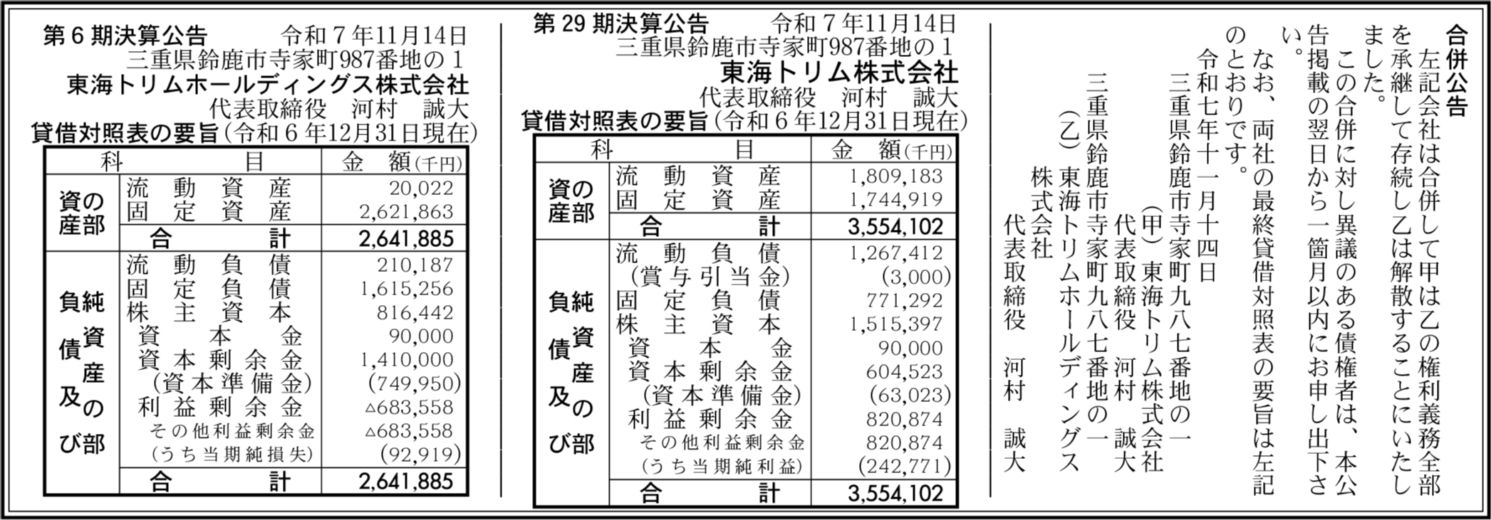 東海トリムホールディングス株式会社 三重県鈴鹿市 【2024年12月期】 |