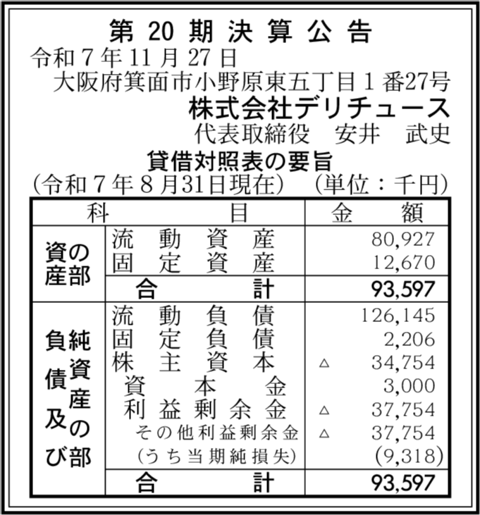 株式会社Ishin閉鎖済み 大阪府箕面市 【2024年12月期】 |