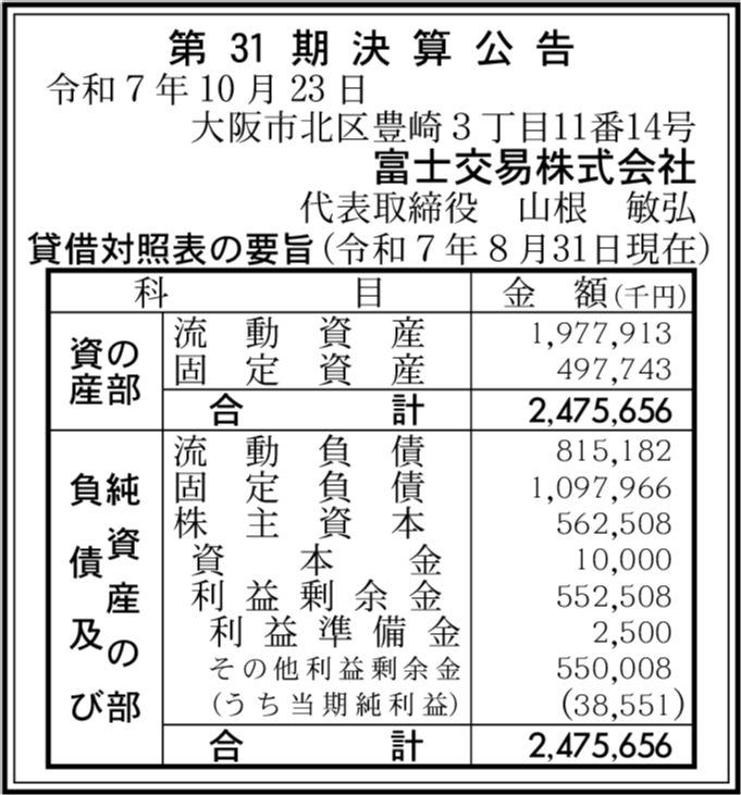 | 利益剰余金 | 5億5,250万8,000円 (+7.5%) |