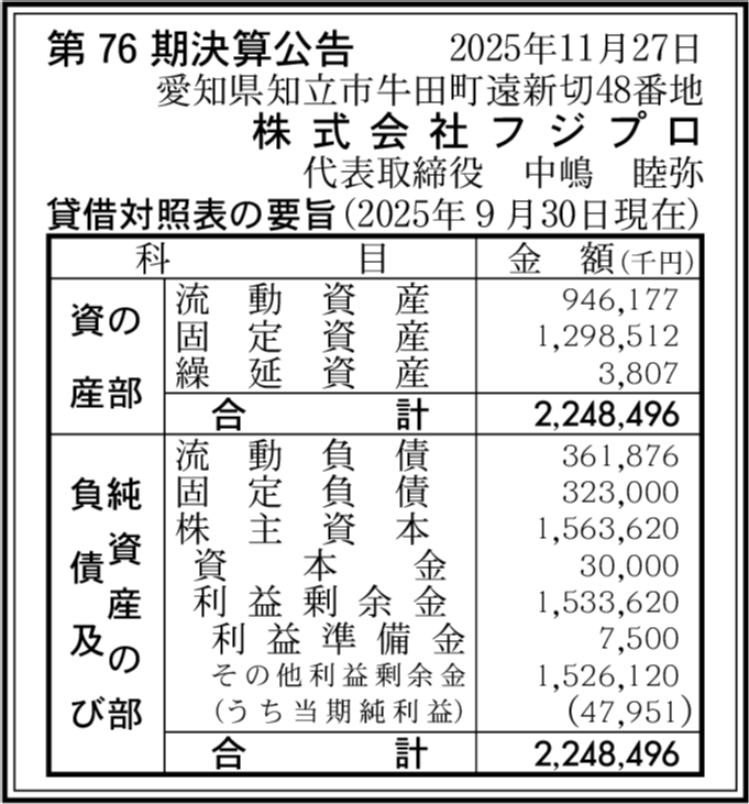 F‐DEN株式会社 愛知県知立市 【2025年9月期】 |