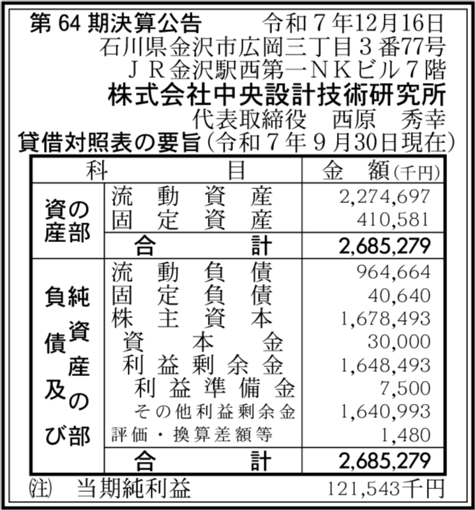 株式会社中央設計技術研究所 石川県金沢市 |