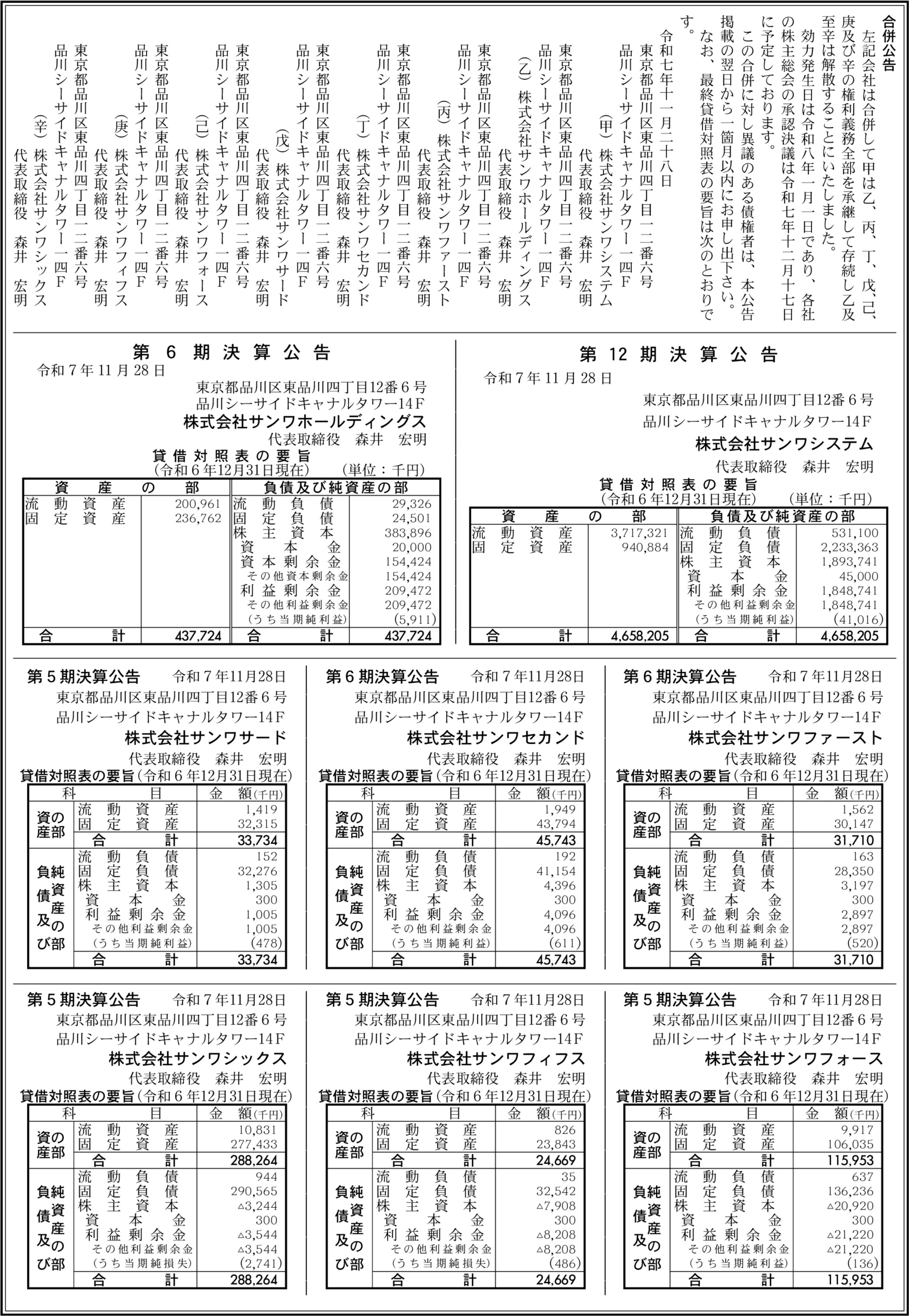 株式会社サンワフィフス 東京都品川区 【2024年12月期】 |