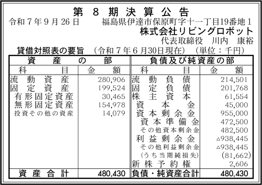 利益剰余金 | △9億3,844万5,000円 (赤字拡大) |