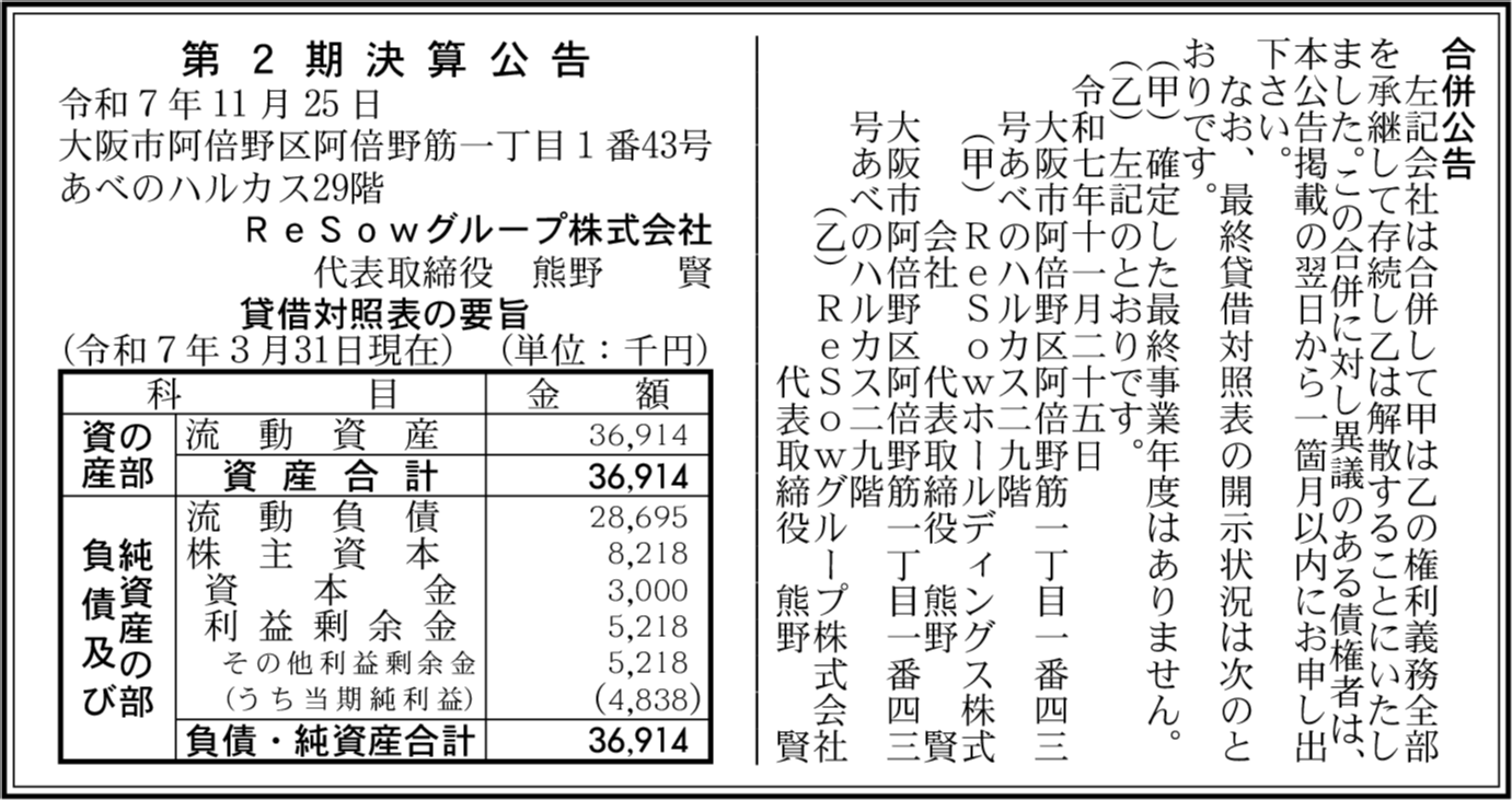 LifeQuest株式会社 大阪市阿倍野区 【2025年3月期】 |