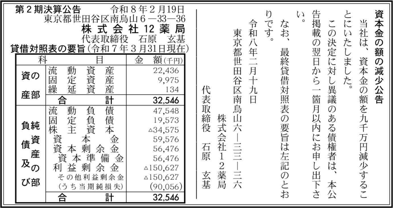 | 利益剰余金 | ▲1億5,062万7,000円 |