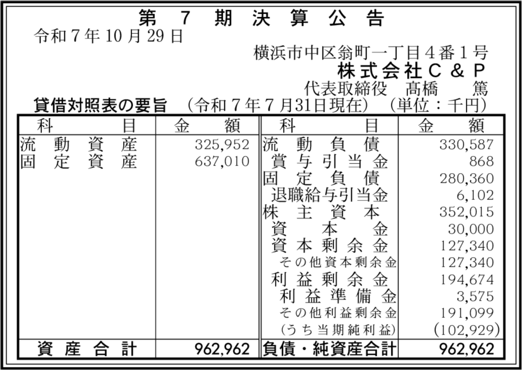 株式会社F.L.P 神奈川県横浜市中区 【2025年3月期】 |