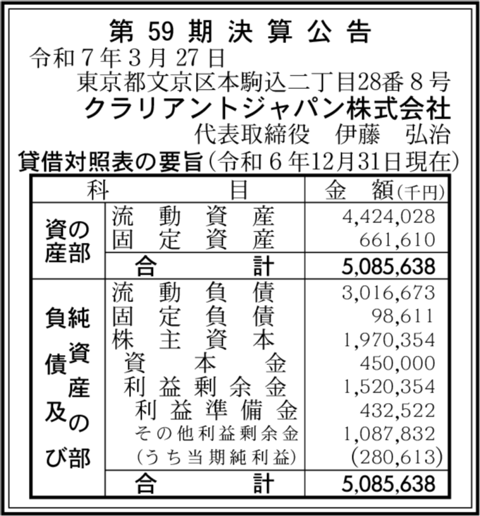 クラリアント触媒株式会社 東京都文京区 【2024年12月期】 |