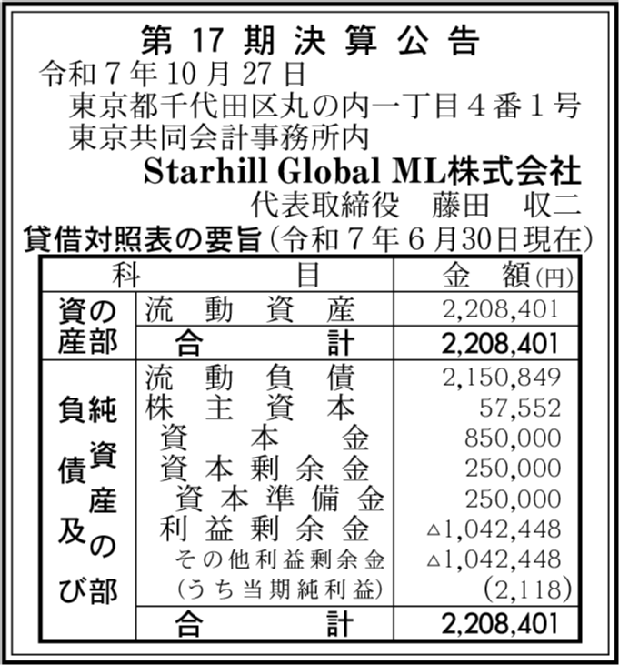 Starhill Global REIT One特定目的会社 東京都千代田区 【2025年6月期】 |