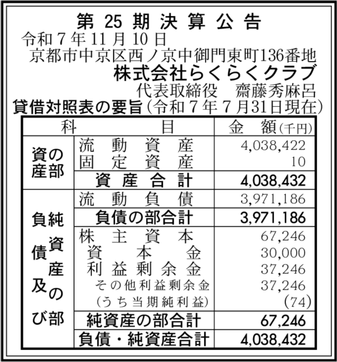 株式会社エルティヴィー 京都市中京区 【2025年7月期】 |