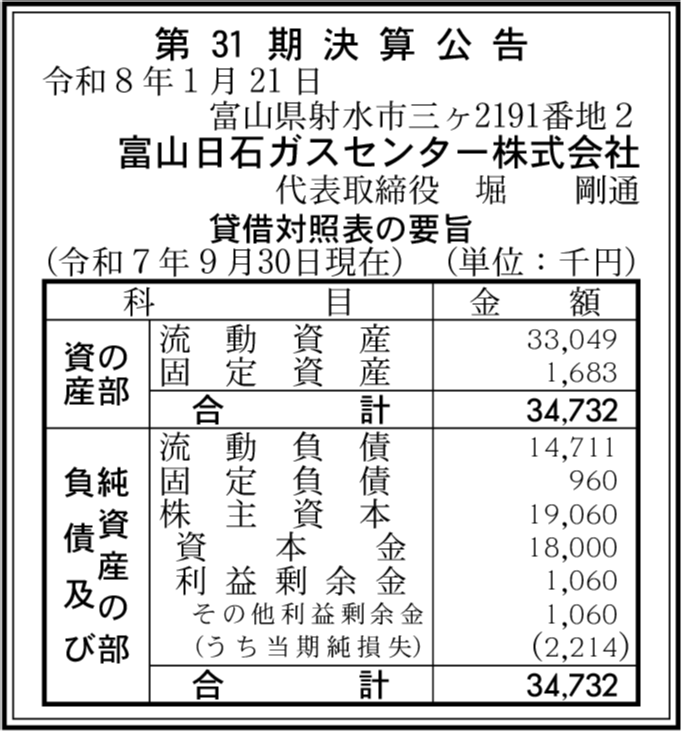 | 会社名 | 富山日石ガスセンター株式会社 |