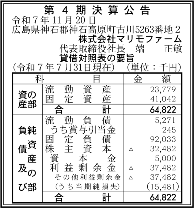 株式会社せともす 広島県尾道市 【2025年7月期】 |