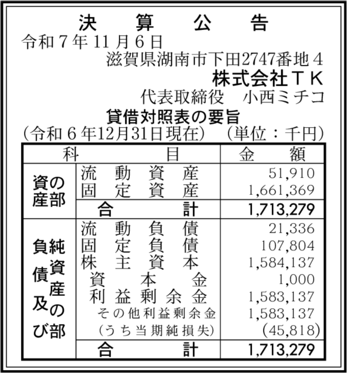 株式会社辻建 滋賀県湖南市 【2025年3月期】 |