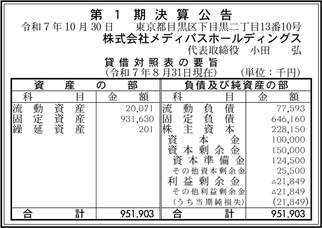株式会社メディパス 東京都目黒区 【2024年12月期】 |