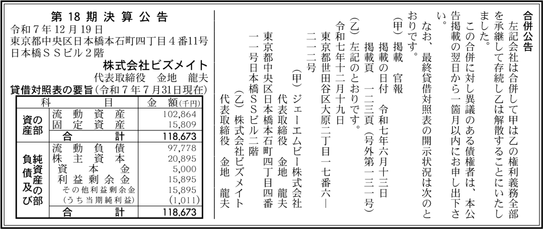ジェーエムビー株式会社 東京都世田谷区 【2024年10月期】 |
