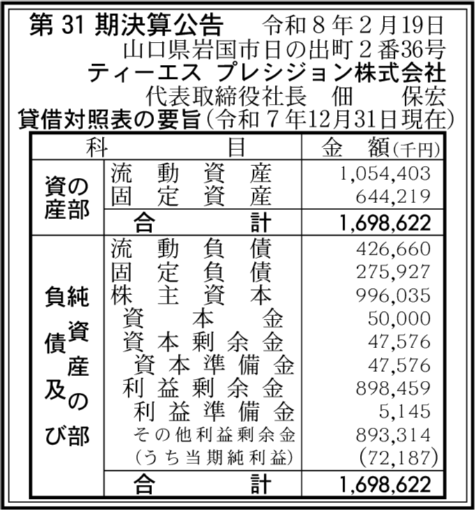 | 会社名 | ティーエス プレシジョン株式会社 |