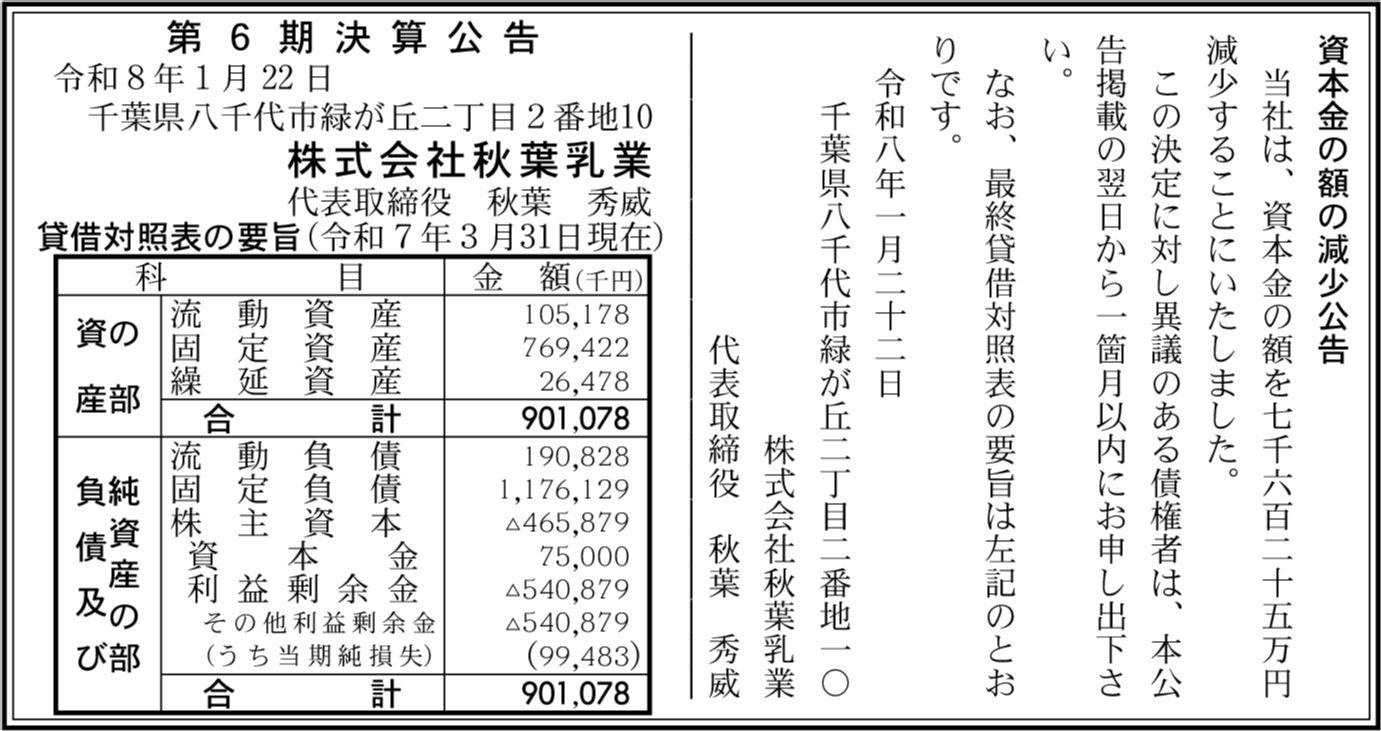 | 会社名 | 株式会社秋葉乳業 |
