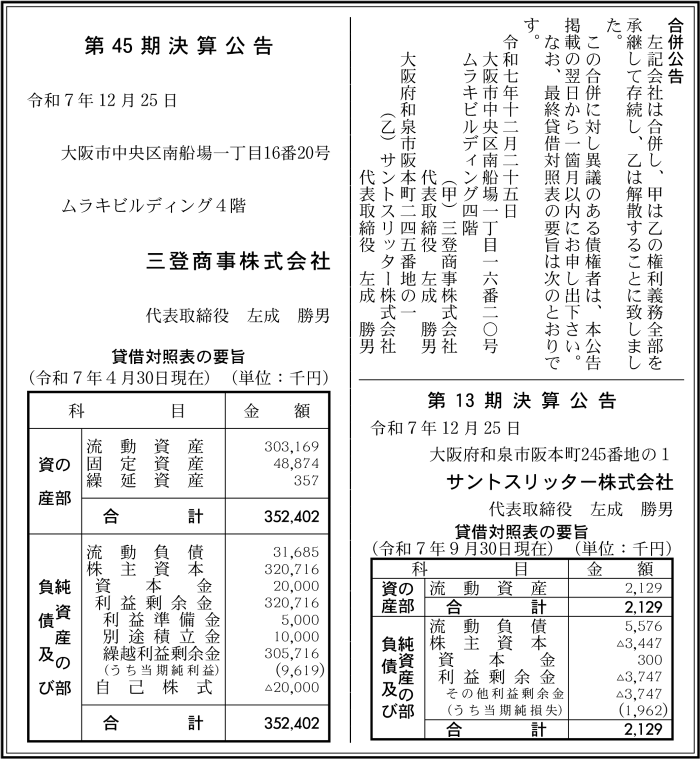 サントスリッター株式会社 大阪府和泉市 【2025年9月期】 |