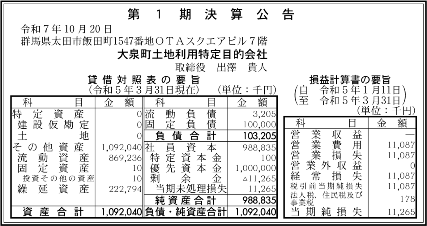 | 会社名 | 大泉町土地利用特定目的会社 |