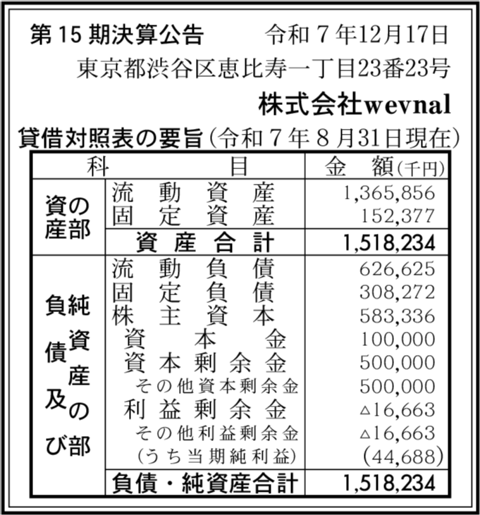 | 利益剰余金 | ▲1,666万3,000円 (赤字縮小) |