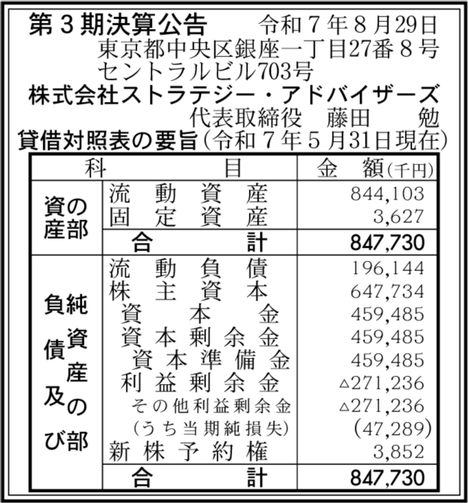 | 会社名 | 株式会社ストラテジー・アドバイザーズ |