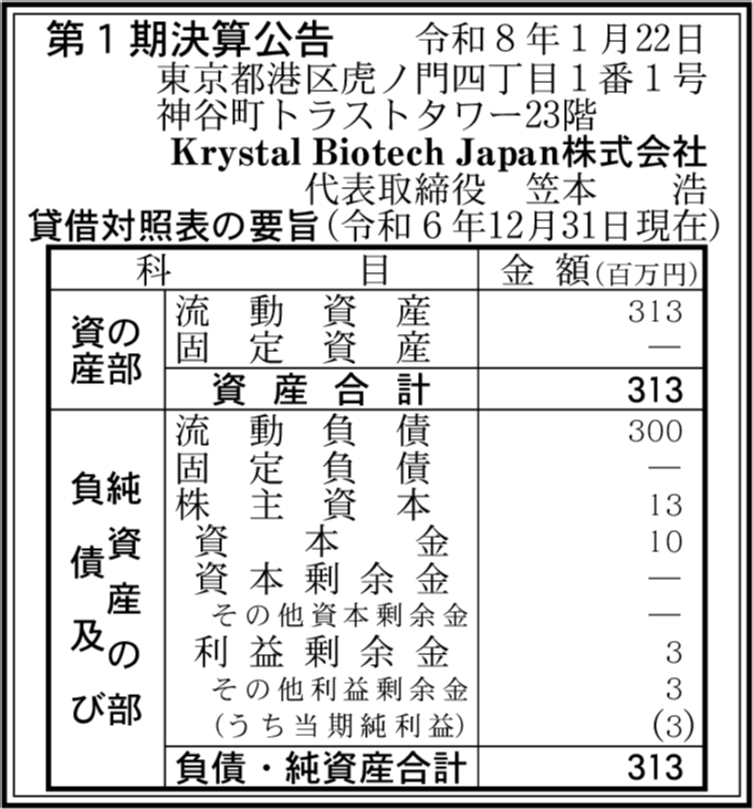 | 会社名 | Krystal Biotech Japan株式会社 |