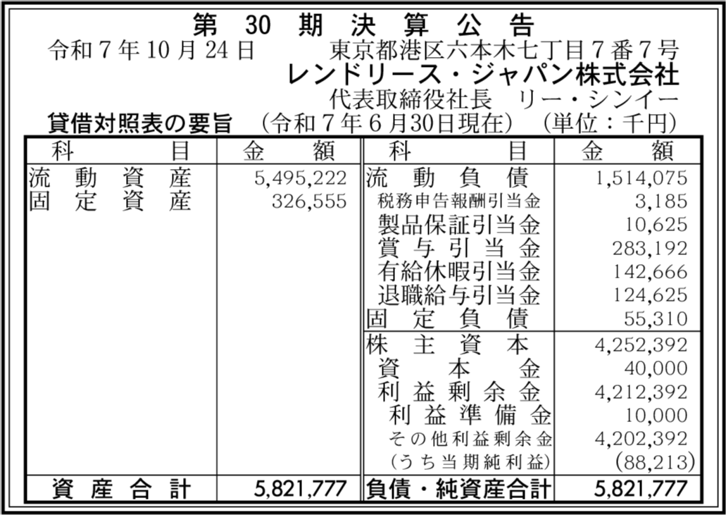 | 会社名 | レンドリース・ジャパン株式会社 |
