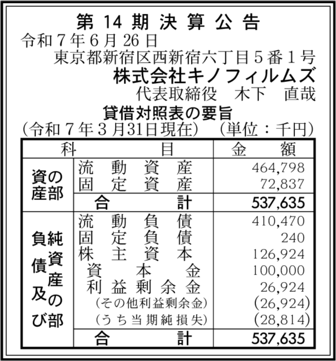 株式会社kino cinema 東京都新宿区 【2025年3月期】 |