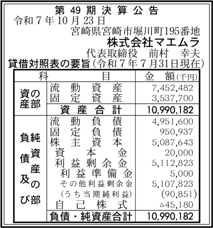 株式会社メモリード宮崎 宮崎市 【2025年5月期】 |