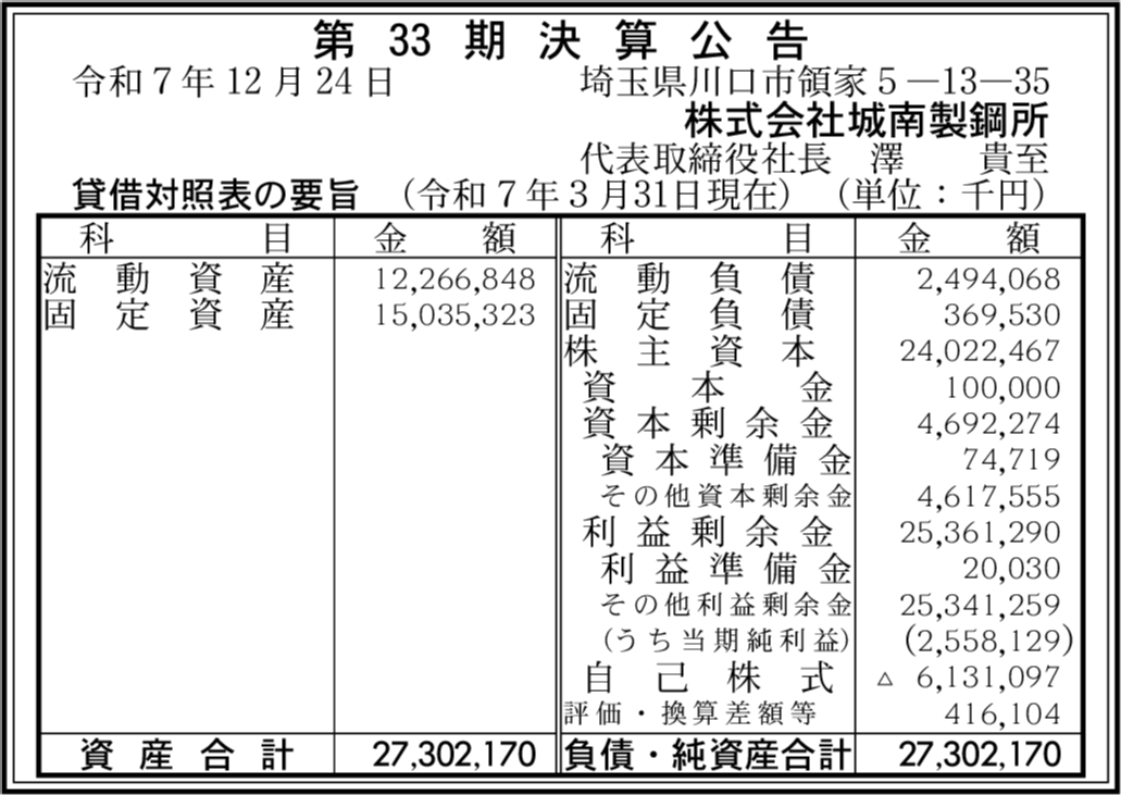 千葉鋳物株式会社 埼玉県川口市 【2025年1月期】 |