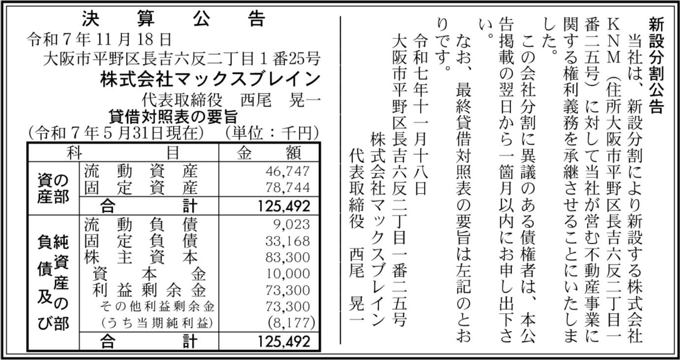 M’sトータル家賃保証株式会社閉鎖済み 大阪市平野区 【2025年6月期】 |