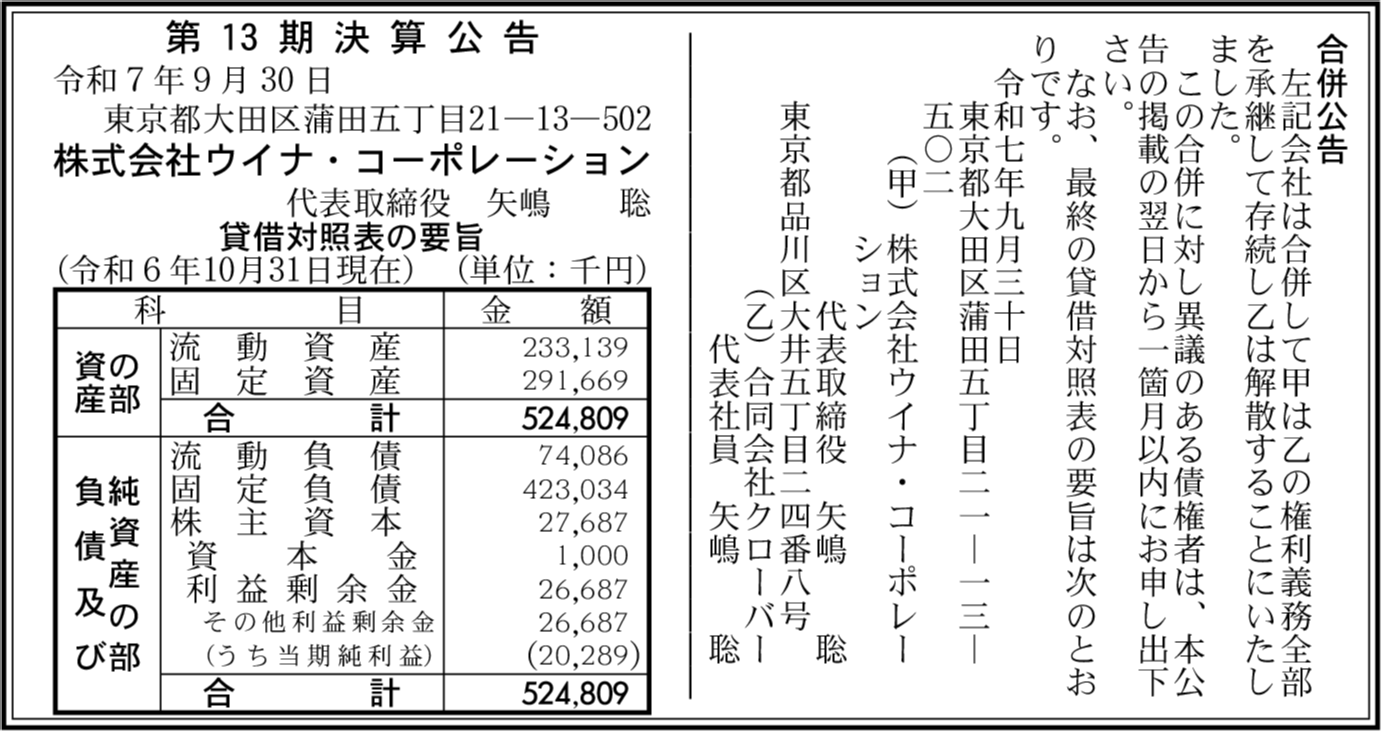 会社名 | 株式会社ウイナ・コーポレーション |