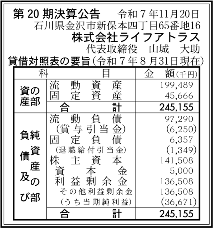 株式会社ライフプラン 石川県金沢市 【2025年8月期】 |