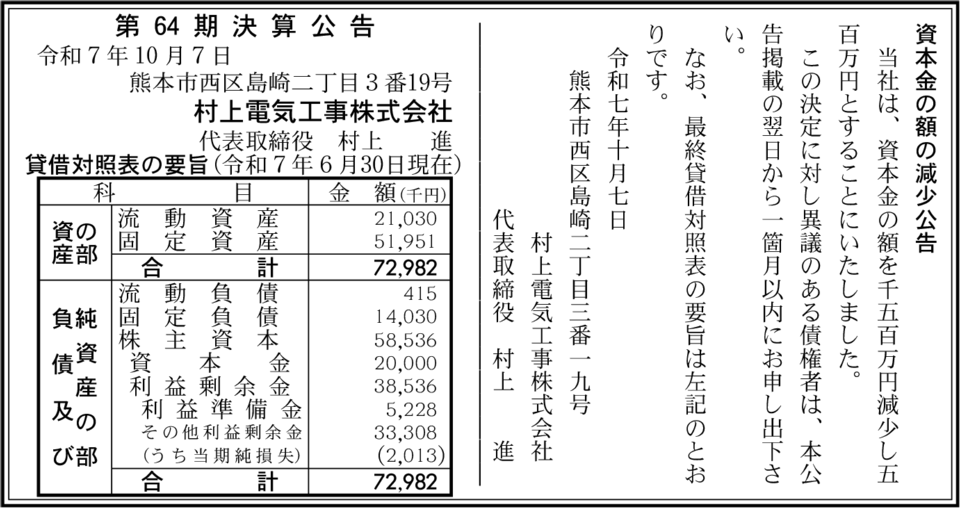 不二電気工業株式会社 熊本市西区 【2025年5月期】 |