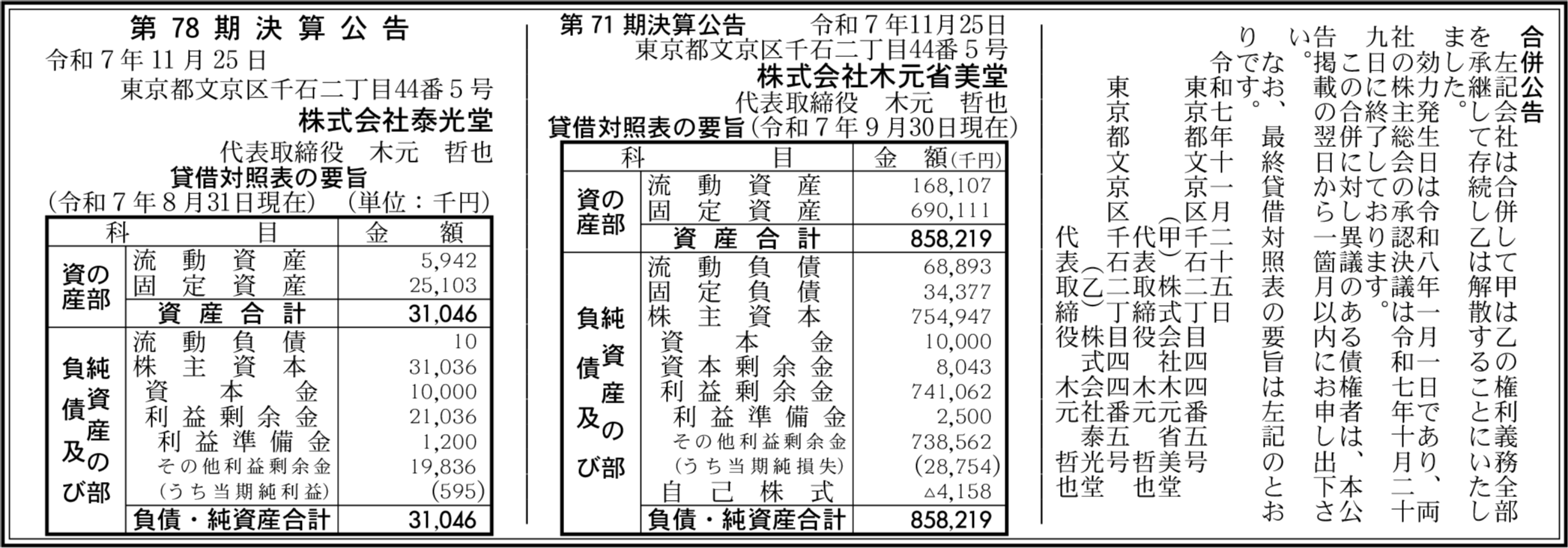 株式会社木元省美堂 東京都文京区 【2025年9月期】 |