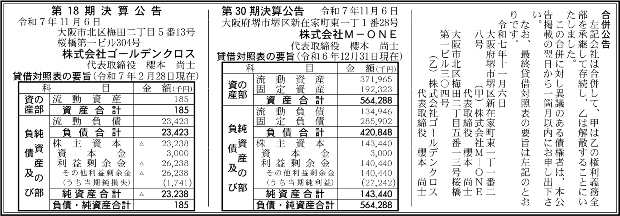株式会社ゴールデンクロス 大阪市北区 【2025年2月期】 |